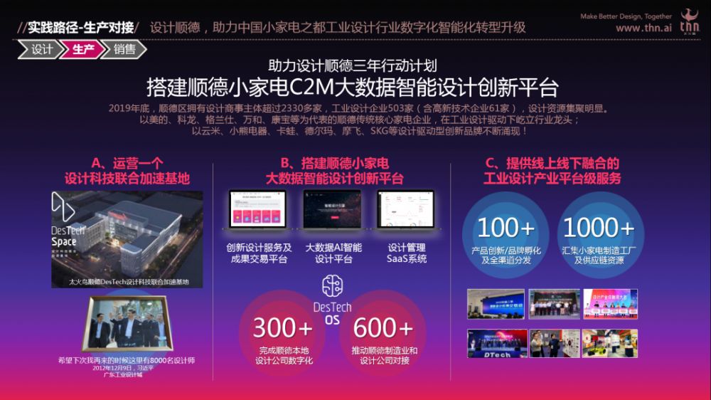 為推動(dòng)“十四五”時(shí)期工業(yè)設(shè)計(jì)深度賦能產(chǎn)業(yè)發(fā)展,積極推動(dòng)工業(yè)設(shè)計(jì)服務(wù)鏈條延伸,2021年3月23日下午,“設(shè)計(jì)創(chuàng)新·賦能產(chǎn)業(yè)——首都科技條件平臺(tái)工業(yè)設(shè)計(jì)領(lǐng)域中心‘百家重點(diǎn)實(shí)驗(yàn)室進(jìn)千家企業(yè)’設(shè)計(jì)領(lǐng)域?qū)?chǎng)對(duì)接會(huì)”在北京DRC工業(yè)設(shè)計(jì)創(chuàng)意產(chǎn)業(yè)基地組織召開,多家首都科技條件平臺(tái)設(shè)計(jì)領(lǐng)域?qū)嶒?yàn)室及設(shè)計(jì)企業(yè)相關(guān)負(fù)責(zé)人參加此次會(huì)議,零距離對(duì)接資源,促進(jìn)合作。 本次會(huì)議首先由首都科技條件平臺(tái)代表為各企業(yè)介紹了首都科技條件平臺(tái)及創(chuàng)新券政策,天瑞聯(lián)創(chuàng)(北京)科技有限公司和北京品物堂產(chǎn)品設(shè)計(jì)有限公司作為首批以北京市設(shè)計(jì)創(chuàng)新中心資質(zhì)成為創(chuàng)新券開放實(shí)驗(yàn)室的代表,向各企業(yè)介紹了設(shè)計(jì)領(lǐng)域的資源優(yōu)勢(shì)與設(shè)計(jì)服務(wù),北京市科學(xué)技術(shù)研究院研發(fā)實(shí)驗(yàn)服務(wù)基地的專家介紹了其實(shí)驗(yàn)室的研發(fā)情況與服務(wù)特色,現(xiàn)場(chǎng)的5家企業(yè)代表分別對(duì)設(shè)計(jì)與技術(shù)等方面提出了各自企業(yè)的需求,太火鳥科技作為本領(lǐng)域中心成員單位介紹了如何通過(guò)科技的手段賦能設(shè)計(jì)產(chǎn)業(yè),通過(guò)互聯(lián)網(wǎng)化SaaS服務(wù)平臺(tái)為工業(yè)設(shè)計(jì)企業(yè)及其客戶提供B2B服務(wù)。 會(huì)上,太火鳥科技代表介紹了由太火鳥B2B設(shè)計(jì)交易與產(chǎn)品創(chuàng)新SaaS服務(wù)平臺(tái)產(chǎn)品以及通過(guò)平臺(tái)提供的線上線下產(chǎn)品創(chuàng)新、供應(yīng)鏈整合、渠道營(yíng)銷和分發(fā)等整體服務(wù),同時(shí)介紹了正在研發(fā)的AI大數(shù)據(jù)人工智能設(shè)計(jì)引擎、C2M大數(shù)據(jù)智能設(shè)計(jì)決策系統(tǒng)等前沿產(chǎn)品。 平臺(tái)通過(guò)大數(shù)據(jù)智能設(shè)計(jì)決策引擎和 AI 智能設(shè)計(jì)生成系統(tǒng),幫助設(shè)計(jì)公司快速地交付符合客戶需求的設(shè)計(jì)決策報(bào)告和草圖設(shè)計(jì)方案。同時(shí)搭建智能設(shè)計(jì)系統(tǒng),根據(jù)客戶的需求,自動(dòng)生成設(shè)計(jì)草圖,甚至自動(dòng)生成 3D 建模,從而極大賦能消費(fèi)品制造業(yè)的創(chuàng)新和設(shè)計(jì)提升。 目前,太火鳥已經(jīng)與京東一起落地了平湖箱包箱包產(chǎn)業(yè)帶、麗水綠色生態(tài)產(chǎn)品產(chǎn)業(yè)帶等,建立了地方特色產(chǎn)業(yè)的智能設(shè)計(jì)中心,以及在順德小家電產(chǎn)業(yè)集群建立了 2.5 萬(wàn)平米的設(shè)計(jì)科技聯(lián)合加速基地,在順德政府和設(shè)計(jì)行業(yè)協(xié)會(huì)的支持下,搭建順德小家電 C2M 大數(shù)據(jù)智能設(shè)計(jì)平臺(tái),下沉到產(chǎn)業(yè)帶線上線下結(jié)合深度對(duì)接;同時(shí)和合肥、寧波、蘇州、義烏等地方政府和優(yōu)勢(shì)制造業(yè)企業(yè)達(dá)成合作,為其提供 C2M 模式數(shù)字化設(shè)計(jì)系統(tǒng)的整體解決方案,從產(chǎn)品設(shè)計(jì)到線上線下智能分發(fā)進(jìn)行全鏈條賦能。 本次會(huì)議由首都科技條件平臺(tái)工業(yè)設(shè)計(jì)領(lǐng)域中心(北京工業(yè)設(shè)計(jì)促進(jìn)中心)主辦,北京市科學(xué)技術(shù)研究院研發(fā)實(shí)驗(yàn)服務(wù)基地、通州工作站協(xié)辦,北京太火紅鳥科技有限公司、北京DRC工業(yè)設(shè)計(jì)創(chuàng)意產(chǎn)業(yè)基地(北京迪希工業(yè)設(shè)計(jì)創(chuàng)意開發(fā)有限公司)、北京工業(yè)設(shè)計(jì)促進(jìn)會(huì)作為支持單位,邀請(qǐng)到包括良系(北京)科技有限責(zé)任公司在內(nèi)的四十余家企業(yè),50余人到場(chǎng)參與會(huì)議,并在會(huì)后進(jìn)行一對(duì)一需求對(duì)接。 首都科技條件平臺(tái)工業(yè)設(shè)計(jì)領(lǐng)域中心積極發(fā)揮設(shè)計(jì)資源及服務(wù)優(yōu)勢(shì),幫助企業(yè)與重點(diǎn)實(shí)驗(yàn)室進(jìn)行高效需求對(duì)接。該領(lǐng)域中心本年度新增16家設(shè)計(jì)領(lǐng)域開放實(shí)驗(yàn)室,將陸續(xù)為企業(yè)開展需求對(duì)接活動(dòng),支持小微企業(yè)與創(chuàng)新券開放實(shí)驗(yàn)室圍繞產(chǎn)品試制、批量化工業(yè)產(chǎn)品生產(chǎn)中所需的產(chǎn)品性能提升、產(chǎn)品結(jié)構(gòu)改進(jìn)等的工業(yè)設(shè)計(jì)項(xiàng)目,促進(jìn)企業(yè)對(duì)工業(yè)設(shè)計(jì)的使用力度。助力企業(yè)提高創(chuàng)新能力,賦能設(shè)計(jì)產(chǎn)業(yè)融合發(fā)展。