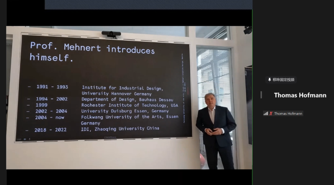 從設(shè)計(jì)學(xué)科角度,如何發(fā)揮設(shè)計(jì)服務(wù)人類(lèi)其他經(jīng)驗(yàn)領(lǐng)域的“新通識(shí)”的作用?設(shè)計(jì)教育如何通過(guò)跨學(xué)科合作、跨文化合作實(shí)現(xiàn)自身的學(xué)科創(chuàng)新?面對(duì)人類(lèi)共同的挑戰(zhàn),如何利用設(shè)計(jì)思維打破學(xué)科之間的僵化壁壘,整合不同層次的知識(shí)和技能,創(chuàng)造和滿(mǎn)足人類(lèi)的新需求,實(shí)現(xiàn)這個(gè)不斷變化世界的人類(lèi)價(jià)值?我們希望通過(guò)新時(shí)代中德乃至全球設(shè)計(jì)界的合作創(chuàng)新,看到更多的針對(duì)這些問(wèn)題的設(shè)計(jì)解決方案,創(chuàng)造更多新的設(shè)計(jì)教育和設(shè)計(jì)研究范式,為的國(guó)際合作找到新的動(dòng)能、注入新的內(nèi)涵。When the West Meets the East同濟(jì)大學(xué)設(shè)計(jì)創(chuàng)意學(xué)院 副教授Daniel教授的分享主要討論了中國(guó)設(shè)計(jì)視角及其對(duì)設(shè)計(jì)研究的影響和貢獻(xiàn)。他介紹了中國(guó)設(shè)計(jì)視角的演變發(fā)展,中國(guó)設(shè)計(jì)早期深受西方影響,近代逐步將關(guān)注點(diǎn)從藝術(shù)性轉(zhuǎn)為創(chuàng)造力,新一代的中國(guó)設(shè)計(jì)師正快速成長(zhǎng)并尋求更多的全球認(rèn)可。他們的設(shè)計(jì)理念中雖然依舊有西方傳統(tǒng),但明顯融入了中國(guó)的文化和哲學(xué)。Daniel教授從“設(shè)計(jì)”這一中國(guó)詞語(yǔ)切入,討論了西方和中國(guó)設(shè)計(jì)理念、視角的不同,以及這種差異性背后的哲學(xué)文化背景,尤其是中國(guó)設(shè)計(jì)視角中蘊(yùn)含的獨(dú)特中國(guó)文化和哲學(xué)智慧。他認(rèn)為中國(guó)設(shè)計(jì)視角會(huì)極大豐富主流的西方設(shè)計(jì)理念,提供更多的啟發(fā)性,將對(duì)復(fù)雜問(wèn)題的理解定義、設(shè)計(jì)研究的發(fā)展、設(shè)計(jì)實(shí)踐的創(chuàng)新開(kāi)拓起到重要作用。《為真實(shí)和虛擬交融的世界而設(shè)計(jì)》Design for the Integrated Real and Virtual World同濟(jì)大學(xué)設(shè)計(jì)創(chuàng)意學(xué)院吳潔教授圍繞“為共同的挑戰(zhàn)而設(shè)計(jì)”這個(gè)主題,介紹分享了自己的學(xué)術(shù)經(jīng)歷和研究視角,尤其是中德學(xué)術(shù)文化交流在其中的重要作用。吳潔教授從童年時(shí)期深受影響的兩本主題相似但來(lái)自東西方不同國(guó)家的書(shū)講起,分享了在學(xué)習(xí)研究過(guò)程中東西方哲學(xué)思想的差異,以及跨學(xué)科的學(xué)習(xí)、不同文化的浸潤(rùn),將會(huì)幫助研究者建立一個(gè)有機(jī)整體的思維方式,并且不斷提供新的滋養(yǎng)和靈感。吳潔教授還介紹了在研究和教學(xué)中持續(xù)進(jìn)行的創(chuàng)新設(shè)計(jì)的探索和實(shí)踐,她認(rèn)為針對(duì)我們面對(duì)的共同挑戰(zhàn)和時(shí)代不斷變化的特點(diǎn),不僅要為現(xiàn)實(shí)世界和虛擬世界而設(shè)計(jì),還要為現(xiàn)實(shí)世界和虛擬世界的完美融合和互動(dòng)而設(shè)計(jì)。神話(huà)和童話(huà)中的超自然、不朽、魔法,在現(xiàn)代語(yǔ)境中都可以有新的理解和借鑒,甚至?xí)o當(dāng)代設(shè)計(jì)提供某些倫理上的警示,尤其是如何對(duì)待科技的發(fā)展,我們應(yīng)該以同樣的善良與寬容來(lái)對(duì)待真實(shí)人類(lèi)、不同物種、虛擬人類(lèi),宇宙是一個(gè)整體,任何部分都無(wú)法割裂存在。數(shù)字媒體建立了過(guò)去與現(xiàn)實(shí)、真實(shí)與虛擬之間的交流與互動(dòng),虛擬世界也是真實(shí)世界的重要延伸,正在經(jīng)歷一個(gè)外延整合的過(guò)程,希望能與更多同仁合作,為真實(shí)和虛擬交融的世界而設(shè)計(jì)。《工業(yè)4.0時(shí)代的設(shè)計(jì)范式》Design Paradigms in the Industry 4.0 EraProf. Dr. Dr. h.c. Detlef Zühlke