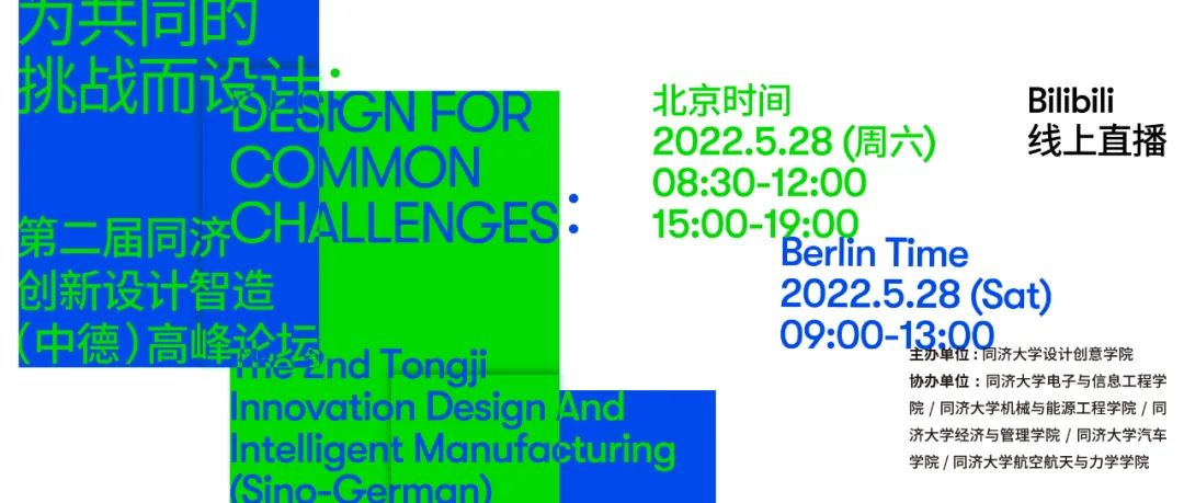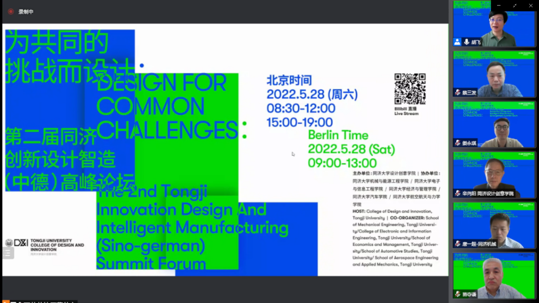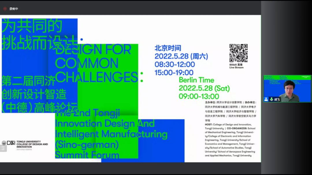 為共同的挑戰(zhàn)而設(shè)計(jì):第二屆同濟(jì)創(chuàng)新設(shè)計(jì)智造(中德)高峰論壇DESIGN FOR COMMON CHALLENGES:The 2nd Tongji Innovation Design and Intelligent Manufacturing (Sino-German) Summit Forum2022年是中德建交五十周年,也是同濟(jì)大學(xué)建校115周年。作為同濟(jì)大學(xué)校慶系列活動(dòng)之一,第二屆同濟(jì)創(chuàng)新設(shè)計(jì)智造(中德)高峰論壇于5月28日線(xiàn)上舉行。圍繞“為共同的挑戰(zhàn)而設(shè)計(jì)”這一主題,聚焦“設(shè)計(jì)與制造、設(shè)計(jì)與科技、設(shè)計(jì)與商業(yè)”等議題,來(lái)自設(shè)計(jì)學(xué)、公共管理、計(jì)算機(jī)科學(xué)與技術(shù)、機(jī)械工程、車(chē)輛工程等學(xué)科共13名中德專(zhuān)家與學(xué)者做了精彩的主題演講,產(chǎn)生跨學(xué)科智慧碰撞,最高在線(xiàn)觀看人數(shù)達(dá)到了13000余人。本次論壇由同濟(jì)大學(xué)“創(chuàng)新設(shè)計(jì)與智能制造學(xué)科群”發(fā)起,分別于上午和下午設(shè)立“同濟(jì)創(chuàng)新設(shè)計(jì)智造論壇”和“為共同的挑戰(zhàn)而設(shè)計(jì)”中德論壇兩場(chǎng)分論壇。同濟(jì)創(chuàng)新智造論壇由同濟(jì)大學(xué)設(shè)計(jì)創(chuàng)意學(xué)院院長(zhǎng)、黨委副書(shū)記胡飛教授主持,中德論壇由同濟(jì)大學(xué)設(shè)計(jì)創(chuàng)意學(xué)院周洪濤教授主持。“同濟(jì)創(chuàng)新設(shè)計(jì)智造論壇”胡飛教授在論壇開(kāi)場(chǎng)介紹表示,2021年同濟(jì)大學(xué)建立“創(chuàng)新設(shè)計(jì)與智能制造學(xué)科群”,開(kāi)啟了同濟(jì)大學(xué)設(shè)計(jì)學(xué)與相關(guān)學(xué)科深度融合協(xié)同發(fā)展的“同濟(jì)大設(shè)計(jì)時(shí)代”。繼2021年“首屆同濟(jì)創(chuàng)新設(shè)計(jì)智造高峰論壇”成功舉辦之后,迎來(lái)了第二屆同濟(jì)創(chuàng)新設(shè)計(jì)智造(中德)高峰論壇,開(kāi)啟學(xué)科群建設(shè)的新發(fā)展階段。