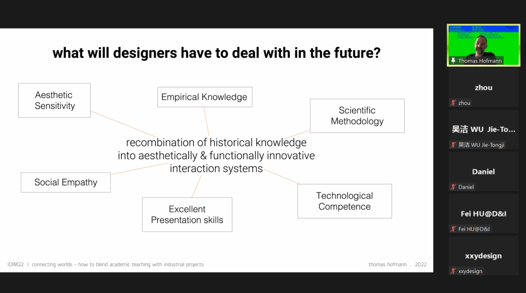 Connecting Worlds – How to Blend Academic Teaching and Industrial Projects in DesignThomas Hoffman教授介紹了在設(shè)計(jì)教育中,尤其是工業(yè)設(shè)計(jì)教育中,將教學(xué)與產(chǎn)業(yè)實(shí)踐結(jié)合起來(lái)的探索,這也是德國(guó)教育的特點(diǎn)之一。他介紹了最近籌劃的一個(gè)碩士培養(yǎng)項(xiàng)目。他認(rèn)為傳統(tǒng)上,大學(xué)希望給學(xué)生留出更多思考和學(xué)術(shù)研究的空間,然而他所在的大學(xué)是一所應(yīng)用科學(xué)大學(xué),教育的目的是幫助學(xué)生更快地熟悉行業(yè)、進(jìn)入行業(yè)。他從培養(yǎng)方案的設(shè)計(jì)、教學(xué)活動(dòng)組織、師資隊(duì)伍、產(chǎn)業(yè)合作等幾個(gè)方面,介紹了在教學(xué)實(shí)踐中,如何緊密與產(chǎn)業(yè)合作,同時(shí)推動(dòng)跨學(xué)科合作、國(guó)際合作,來(lái)幫助學(xué)生更快地了解技術(shù)的發(fā)展、產(chǎn)業(yè)的現(xiàn)狀,他的介紹強(qiáng)調(diào)了設(shè)計(jì)教育中連接的重要性,不僅是教學(xué)與產(chǎn)業(yè)之間的連接,還包括理論與實(shí)踐、東方與西方等各類(lèi)連接。