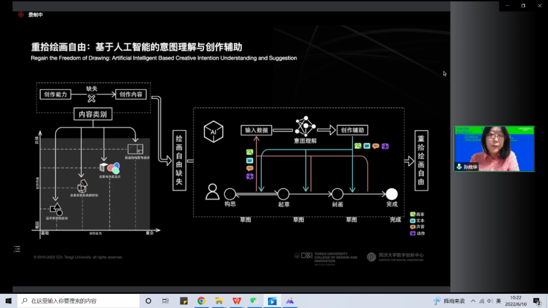 交互設(shè)計(jì)涉及人機(jī)之間,或者是人和系統(tǒng)之間關(guān)系的研究。在這個(gè)過(guò)程中,交互設(shè)計(jì)更多是深度考慮用戶(hù)、產(chǎn)品和跨學(xué)科的創(chuàng)新方式,以及對(duì)目標(biāo)對(duì)象的數(shù)字人造物或者智能系統(tǒng)或技術(shù)對(duì)交互設(shè)計(jì)的貢獻(xiàn),既有交互的特點(diǎn),有很多設(shè)計(jì)共性的地方。她介紹了人-機(jī)關(guān)系的演講經(jīng)歷了“人類(lèi)智能”、“數(shù)字增強(qiáng)人類(lèi)智能”以及“人機(jī)協(xié)同智能”三個(gè)發(fā)展階段。并從“基于人工智能的繪畫(huà)意圖理解及創(chuàng)作輔助”、“基于迂回描述的失語(yǔ)癥患者非常用目標(biāo)詞檢索”和“支持康復(fù)評(píng)估與訓(xùn)練指導(dǎo)的遠(yuǎn)程視診”幾個(gè)代表性研究工作來(lái)闡釋人機(jī)協(xié)同如何來(lái)提升和拓展人的能力;以及“設(shè)計(jì)師-AI協(xié)同創(chuàng)意”、“人機(jī)共駕中的可解釋性HMI”來(lái)分享人機(jī)智能融合協(xié)同工作。