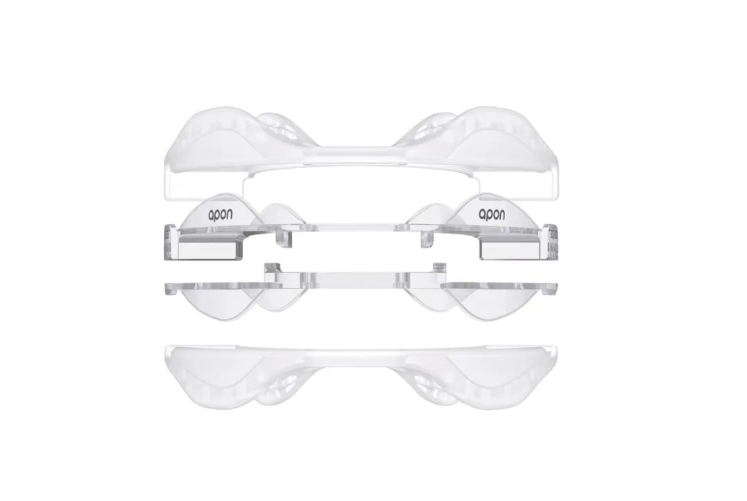 首先,該矯治器可以固定下頜骨并阻止其向后移動,從而有效減少從腭咽到舌咽的通道的阻塞。適用于多部位梗阻患者,具有效果穩(wěn)定、舒適、便攜等優(yōu)點。該產(chǎn)品的另一特點是可伸縮貼管,可調(diào)范圍更大,可根據(jù)患者對上氣道擴張的不同需求,在0mm至8mm之間進行調(diào)節(jié),適應更多人群。在結(jié)構(gòu)設計上充分考慮了亞洲牙弓,使產(chǎn)品輕便舒適。此外,采用專利的上下接頭結(jié)構(gòu),操作更方便,攜帶更方便。內(nèi)置溫度感應裝置,簡化了咬合成型步驟,用戶只需觀察其溫度標簽,無需額外計時或測溫。