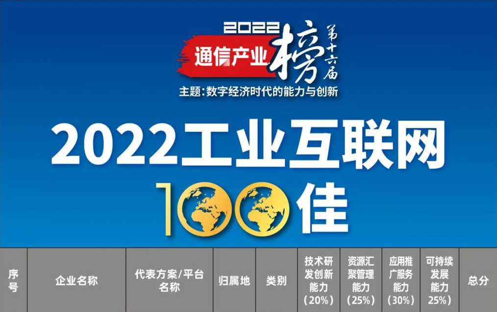 作為工業(yè)互聯(lián)網(wǎng)領(lǐng)域權(quán)威性的第三方產(chǎn)業(yè)評價體系和通信產(chǎn)業(yè)榜的重要組成部分,2022工業(yè)互聯(lián)網(wǎng)100佳榜單每年都深受業(yè)界關(guān)注,今年榜單以“數(shù)字經(jīng)濟時代的能力與創(chuàng)新”為總主題,契合數(shù)字經(jīng)濟時代賦予工業(yè)互聯(lián)網(wǎng)角色和使命,反映工業(yè)互聯(lián)網(wǎng)市場主體的實踐與能力。