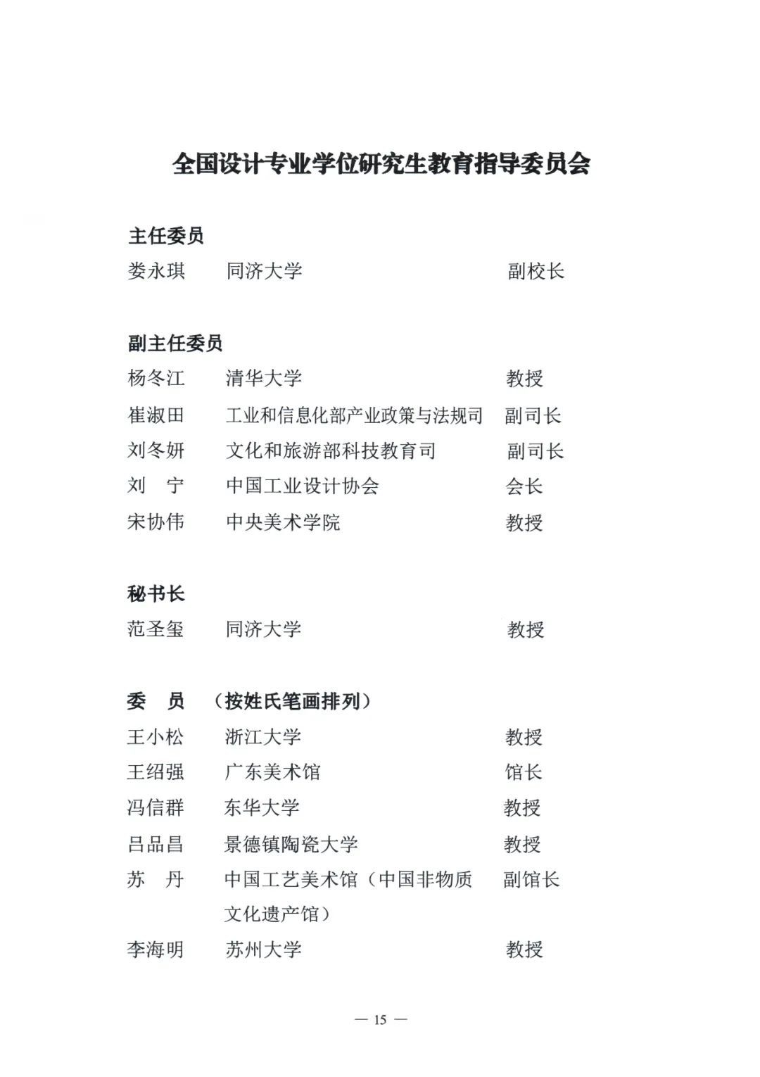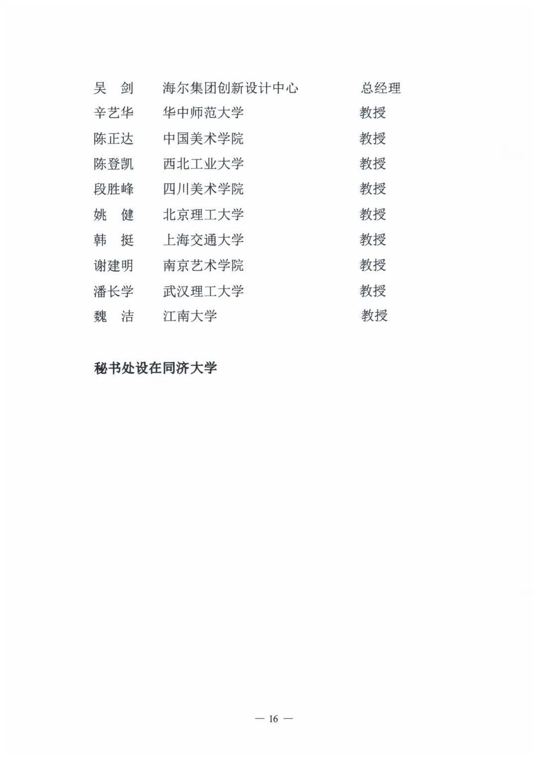 其中,全國設(shè)計(jì)專業(yè)學(xué)位研究生教育指導(dǎo)委員會設(shè)主任委員1名,副主任委員5名,秘書長1名,委員16名。其中秘書處設(shè)置在同濟(jì)大學(xué)。