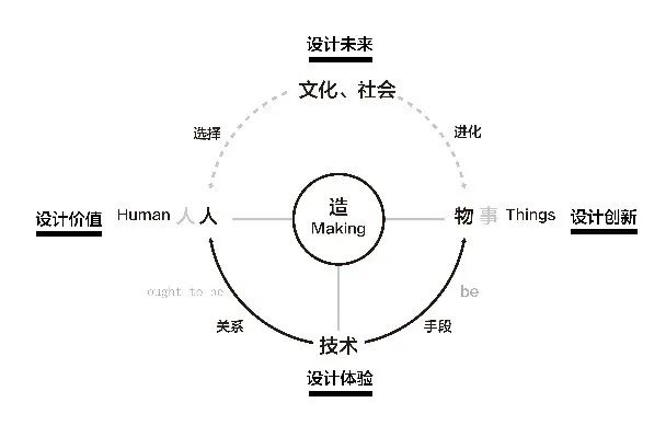 今天中國(guó)設(shè)計(jì)應(yīng)該有推動(dòng)中國(guó)制造向中國(guó)創(chuàng)造轉(zhuǎn)變的新標(biāo)準(zhǔn),其產(chǎn)生具有歷史必然性,這是一個(gè)影響深刻且意義巨大的哲學(xué)命題。從哲學(xué)底層出發(fā),標(biāo)準(zhǔn)的建立必定要遵循基本邏輯和規(guī)律。其一是馬克思的《1844年經(jīng)濟(jì)學(xué)哲學(xué)手稿》中明確談到的“人的世界和物的世界”的關(guān)系。馬克思認(rèn)為人是有意識(shí)的類存在物,在改造自然界的實(shí)踐中,人始終是主體。人既可以按照“物的尺度”去認(rèn)識(shí)事物的“客觀規(guī)律”,又可以根據(jù)“人的尺度”去改變世界,把世界變成理想的現(xiàn)實(shí)。進(jìn)一步,科學(xué)技術(shù)探究未知世界的客觀規(guī)律,即解決人類改造自然“物的世界”的“Be”的問題;但是社會(huì)中“人的問題”無疑又是多向度的。