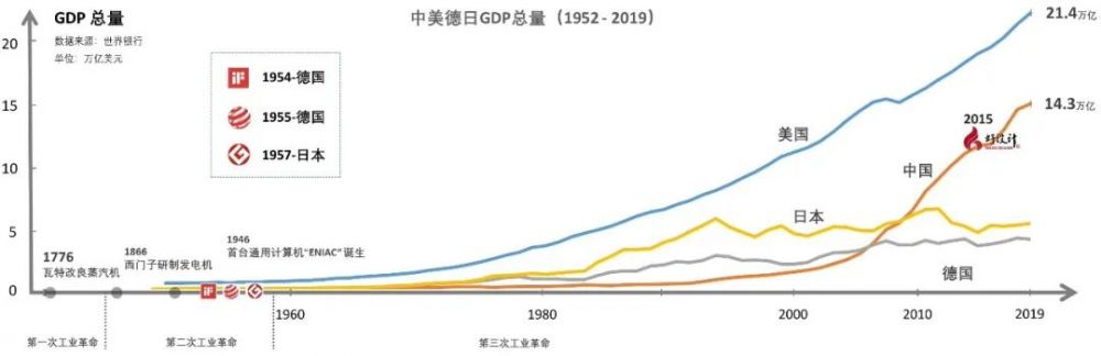對(duì)比美國(guó)、日本和中國(guó)1960年至今的GDP的變化趨勢(shì),可以看出:美國(guó)自20世紀(jì)后一直保持著國(guó)家GDP總量居世界第一的地位。近年來,我國(guó)GDP總量與美國(guó)之間的差距逐漸縮?。ń刂?019年,美國(guó)GDP總量為21.433萬億美元,中國(guó)GDP總量為14.343萬億美元),迎來彎道超車的絕好時(shí)機(jī)。當(dāng)前,我國(guó)正處于加快構(gòu)建“雙循環(huán)”發(fā)展新格局的關(guān)鍵時(shí)期,更需要讓全民族、全社會(huì)認(rèn)識(shí)到設(shè)計(jì)在國(guó)家科技創(chuàng)新發(fā)展中的不可或缺性,以創(chuàng)新設(shè)計(jì)提升國(guó)家軟實(shí)力,復(fù)興中華文明。因此,“好設(shè)計(jì)獎(jiǎng)”的誕生有著深刻的歷史必然性,代表著中國(guó)產(chǎn)業(yè)文明發(fā)展的先進(jìn)方向和未來大勢(shì)。